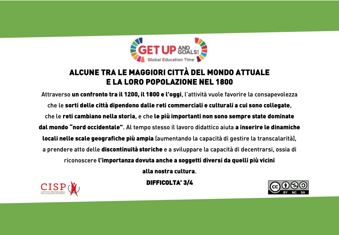 Attraverso un confronto tra il 1200, il 1800 e l’oggi, l’attività vuole favorire la consapevolezza che le sorti delle città dipendono dalle reti commerciali e culturali a cui sono collegate, che le reti cambiano nella storia, e che le più importanti non sono sempre state dominate dal mondo “nord occidentale”.